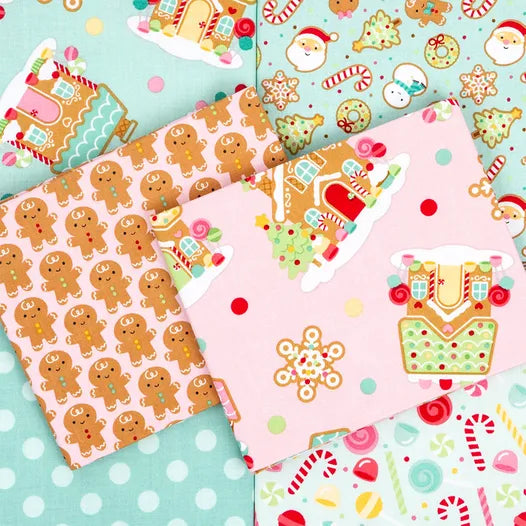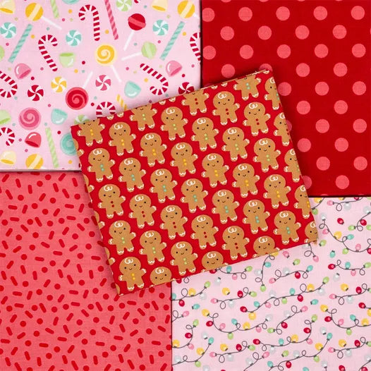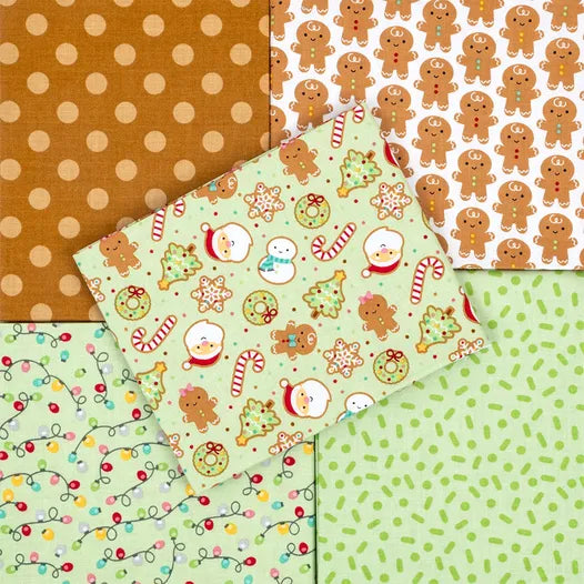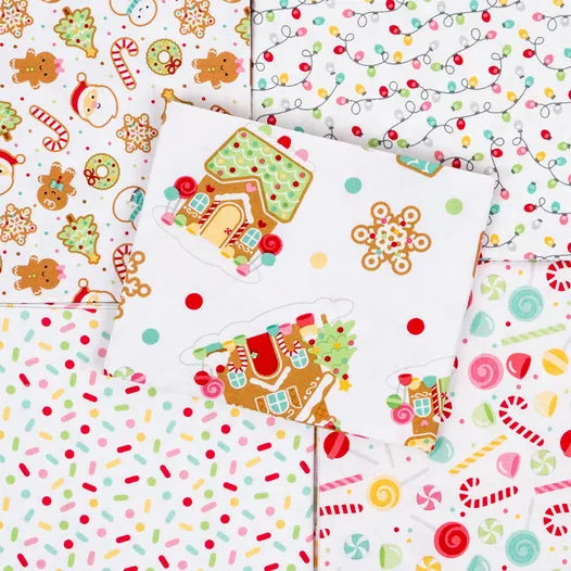 Indulge your holiday spirit with the Gingerbread Kisses 5″ Stacker, a festive pre-cut bundle by Doodlebug Designs for Riley Blake Designs featuring gingerbread houses, candy canes, cookies, twinkle lights, and sweet treats in vibrant, holiday-ready colors perfectly curated for quilters, crafters, and holiday enthusiasts!