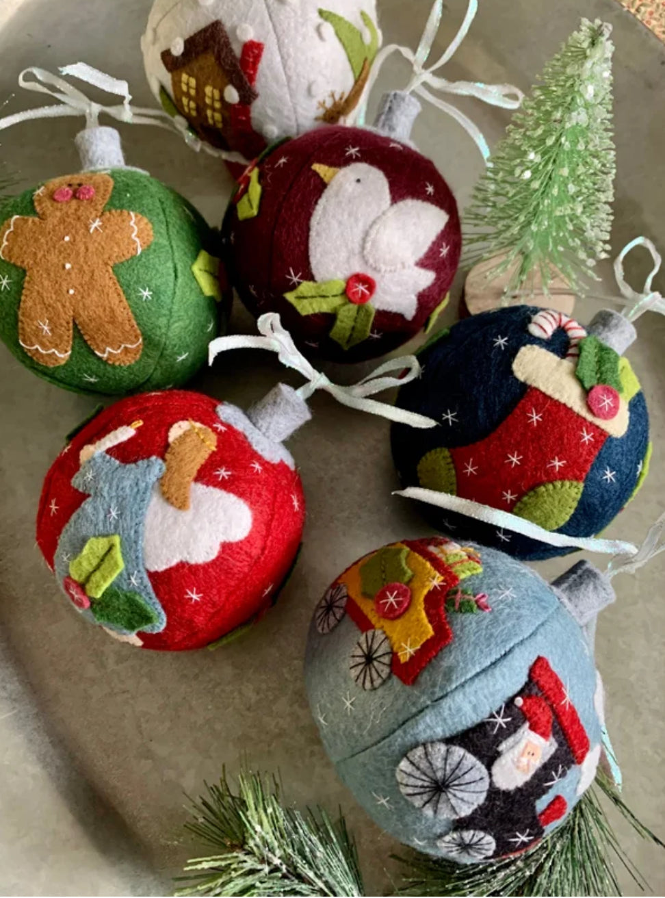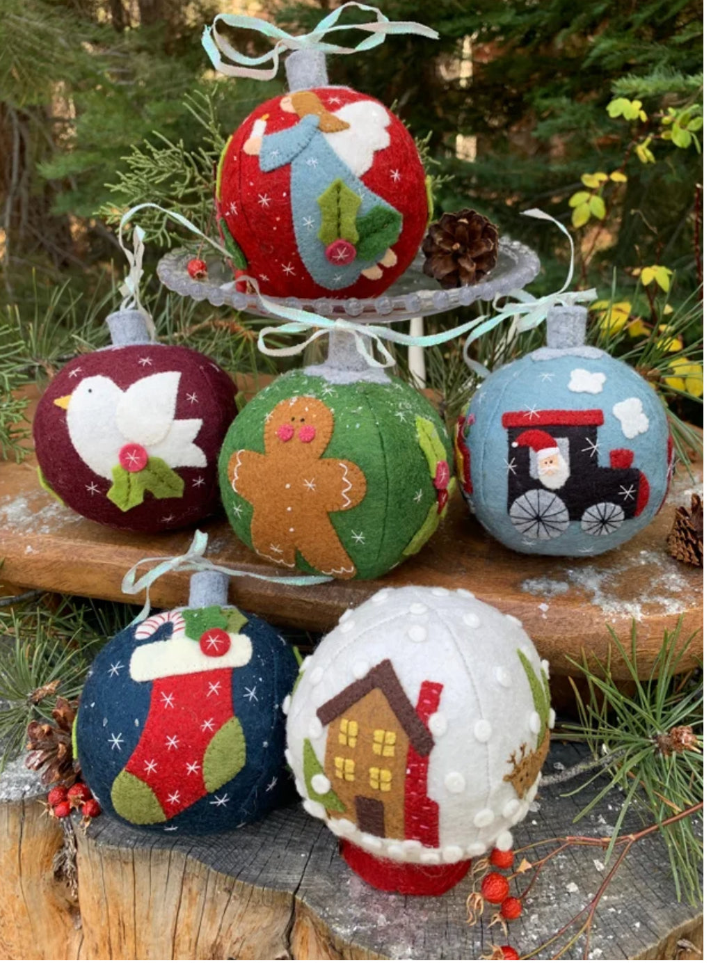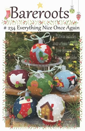 Everything Nice Ornaments needed another set so, "Once again", Barrie has designed 5 more ornaments and one very special little snow globe. This pattern is fun and easy to appliqué using wool felts (or felted wool friendly too).