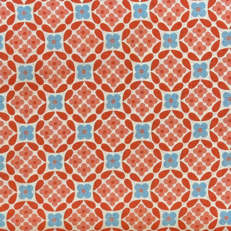 Flower Days Circles in Red by Koko Seki is a supporting print to the Flower Days Patchwork print. The 100% cotton fabric has an almost lightweight linen feel at 135gsm and would be groovy in any project quilting, decor or small project.