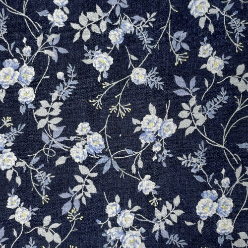 French Rose Navy Blue Linen Canvas Fat Quarter - Handworks Fabric Japan