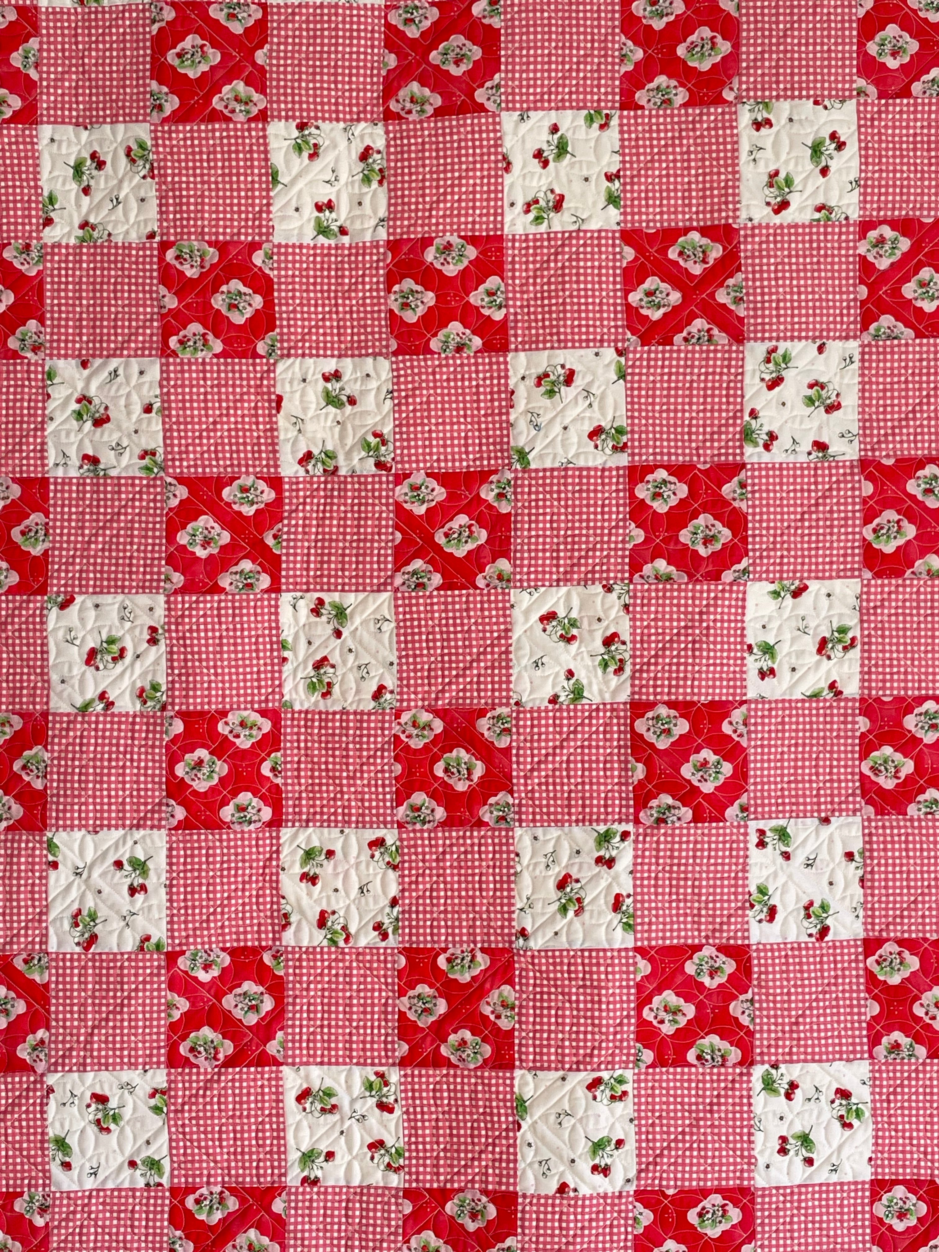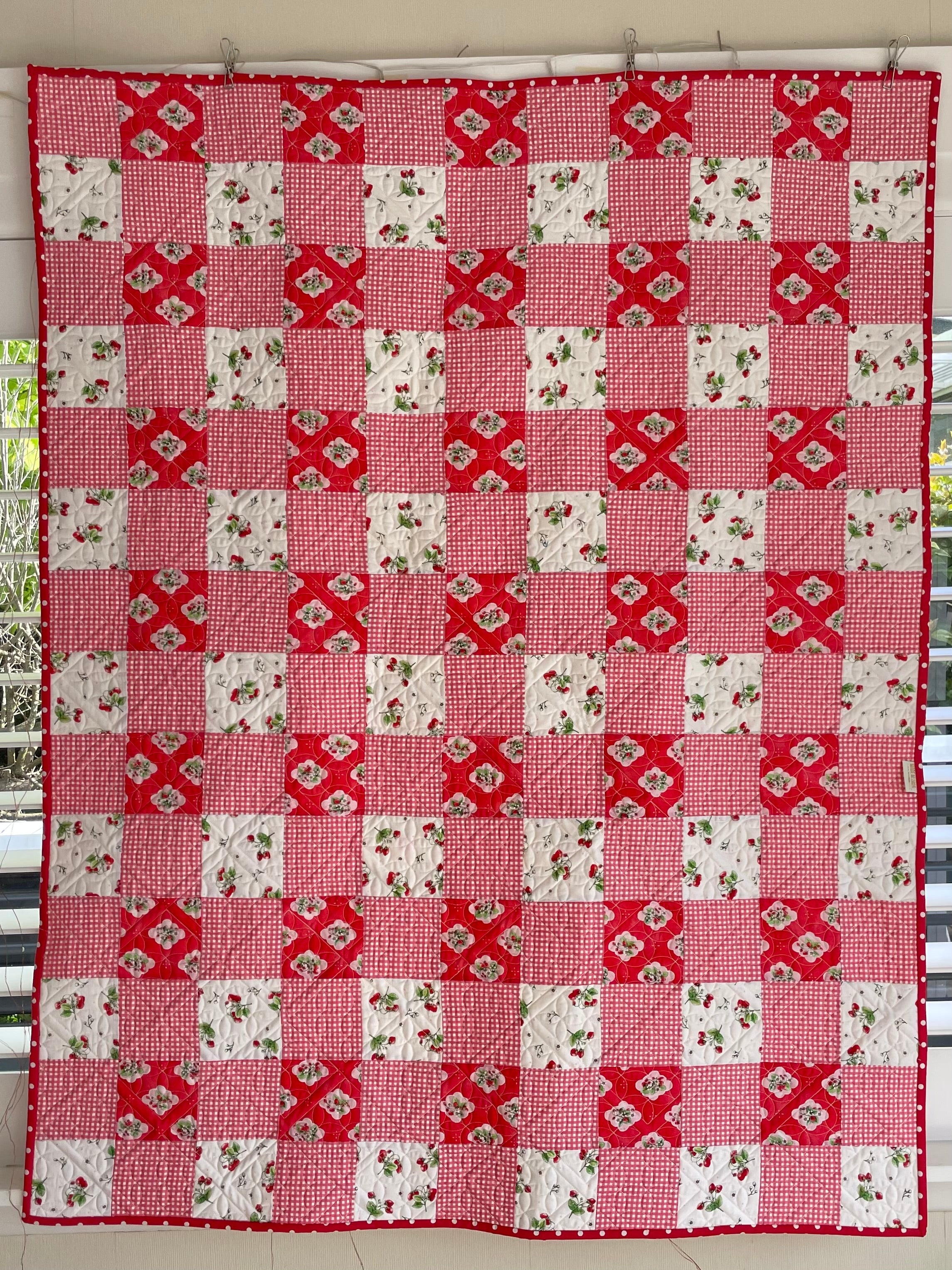 All the fabric you need to make your own Gingham Strawberry 3 hour baby quilt including the Red Polka dot for binding. I can testify that this pattern is easily done in a weekend and would make a sweet gift for any small person or Mum to be 😊