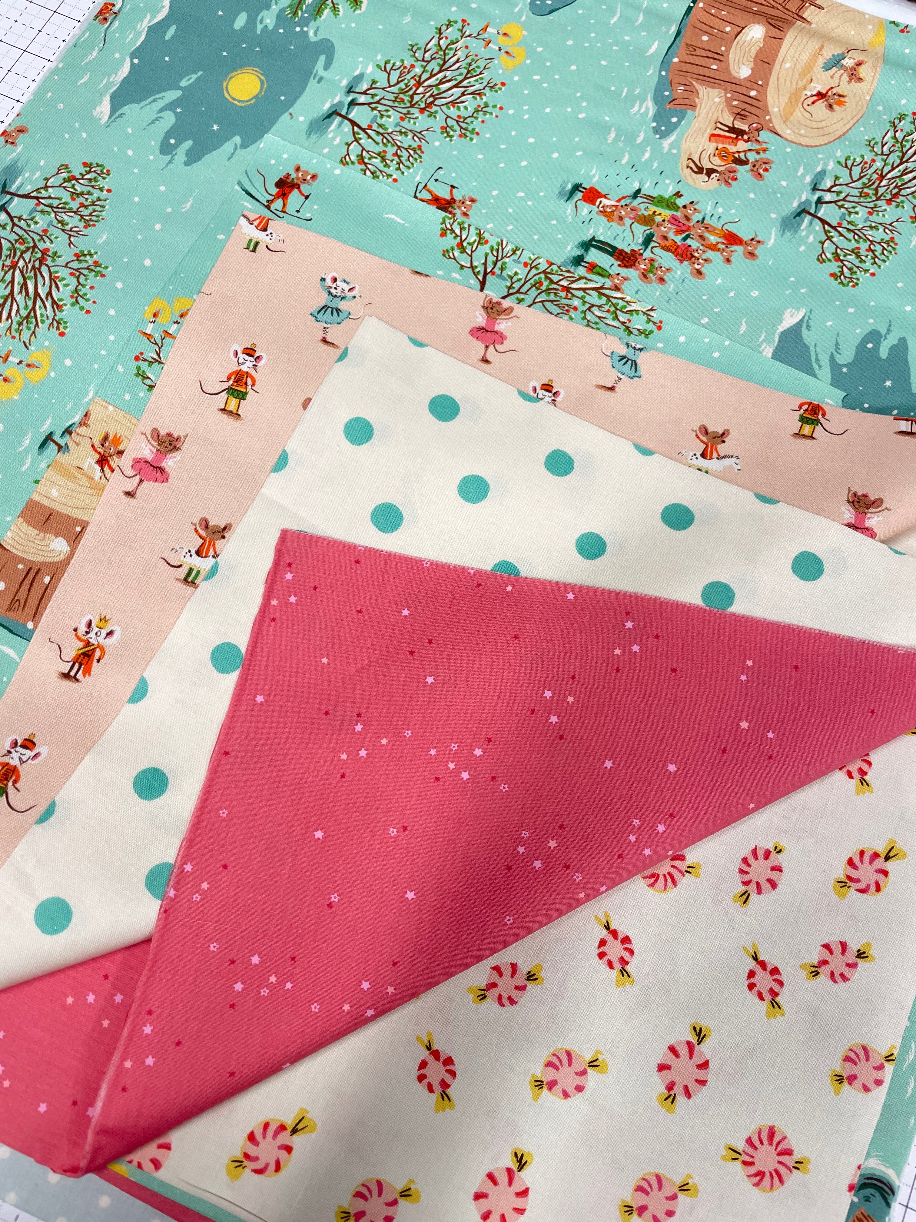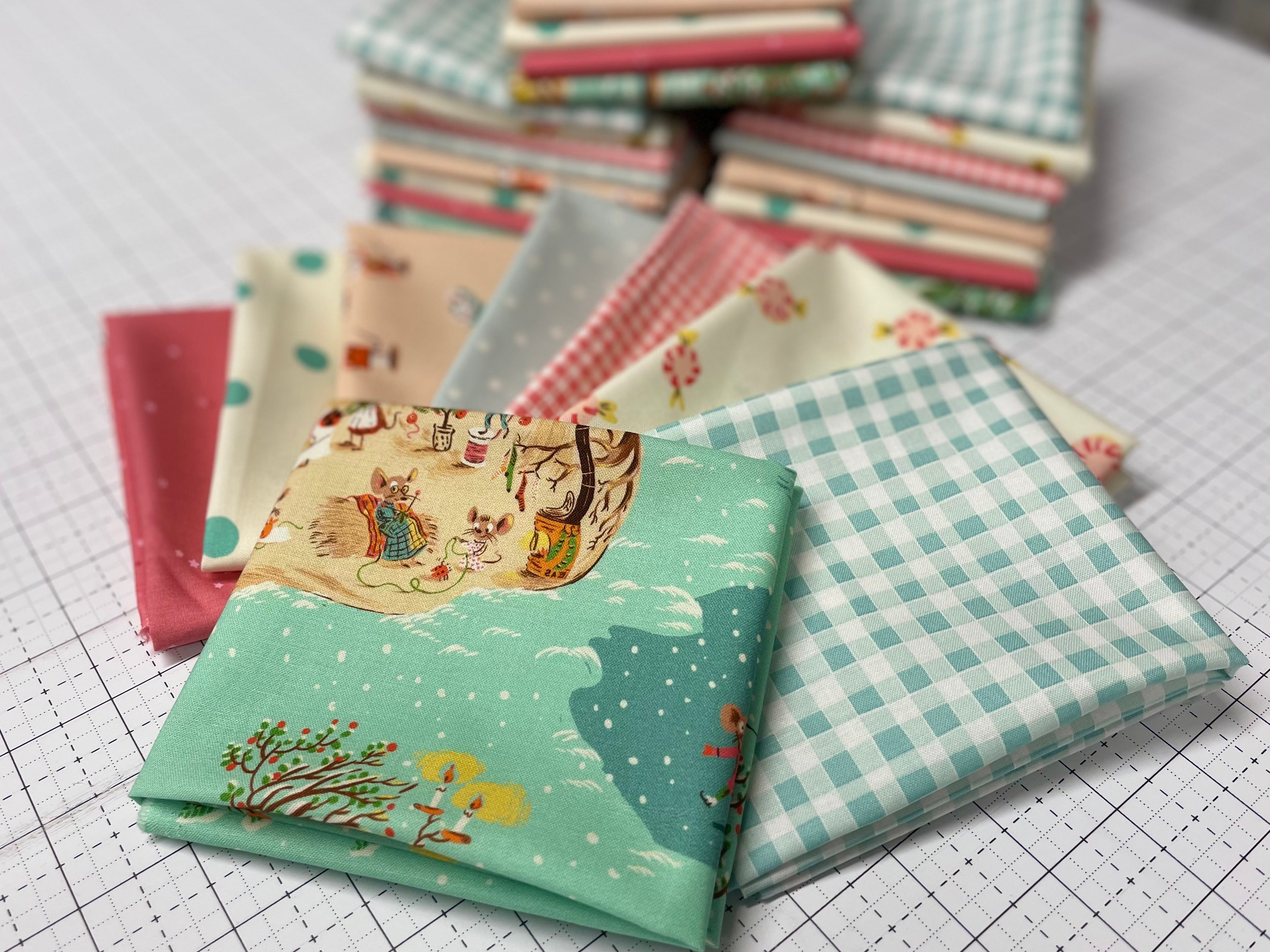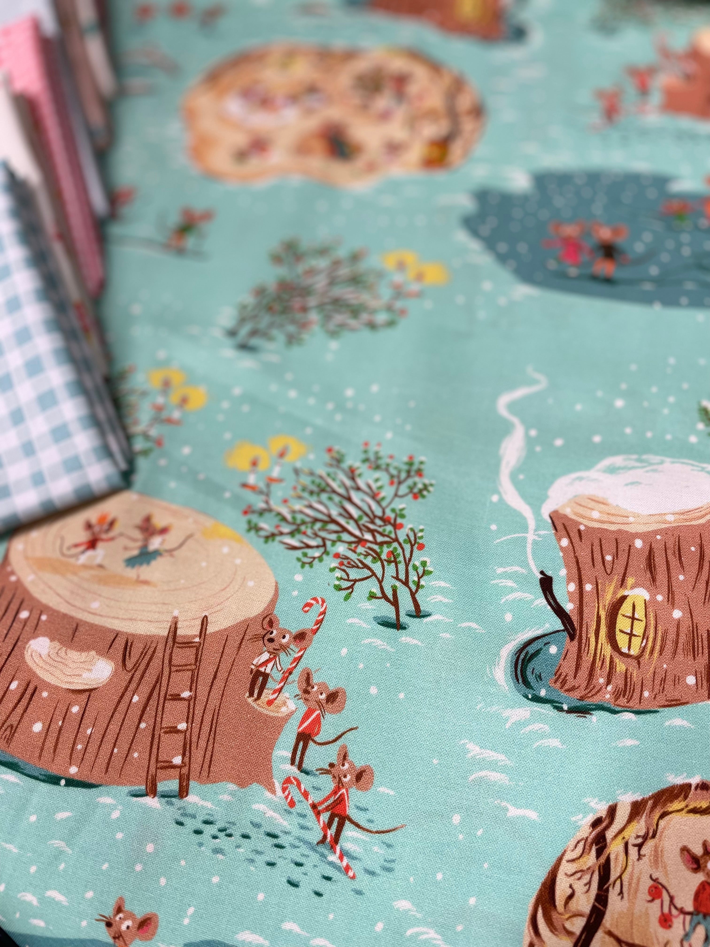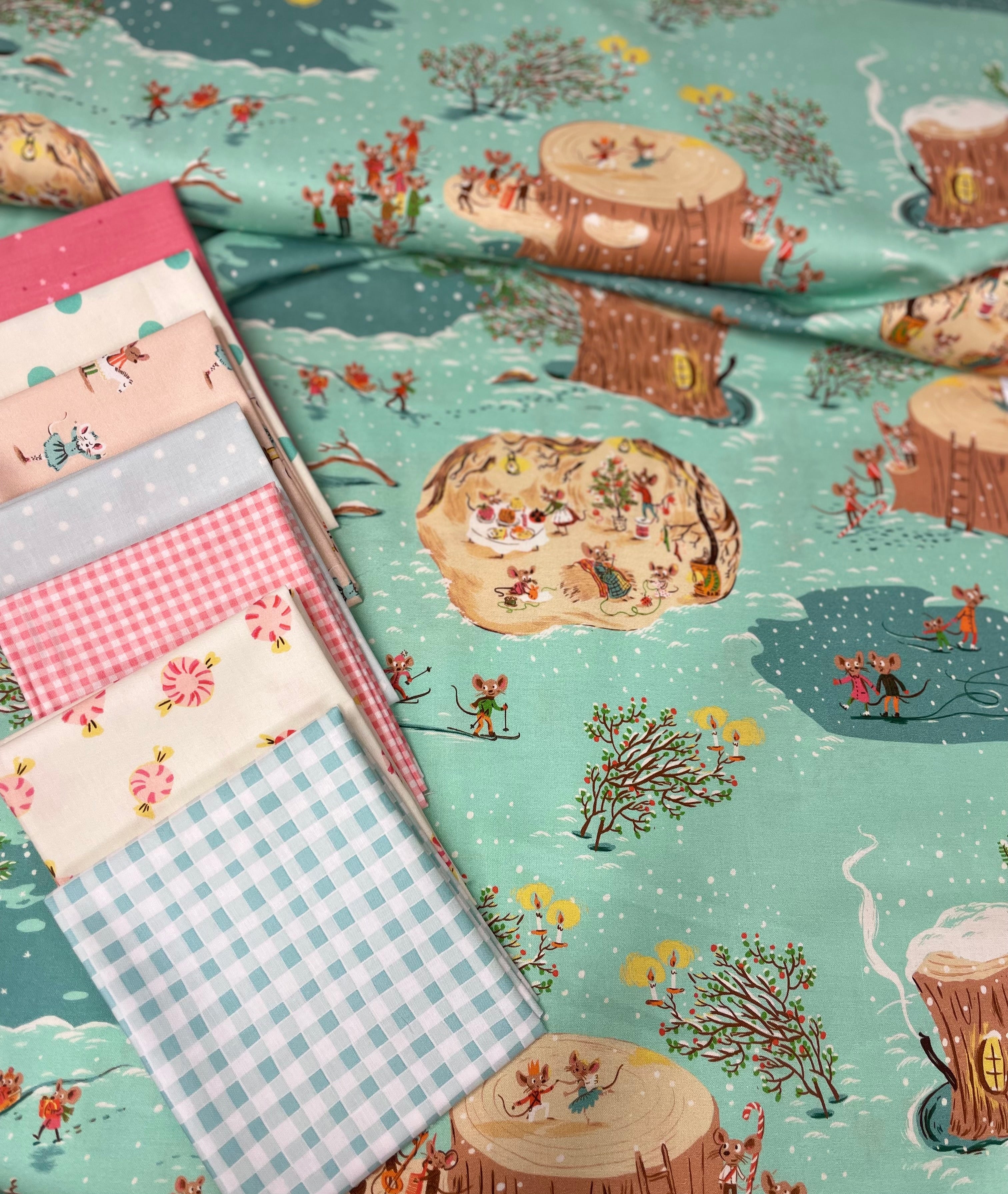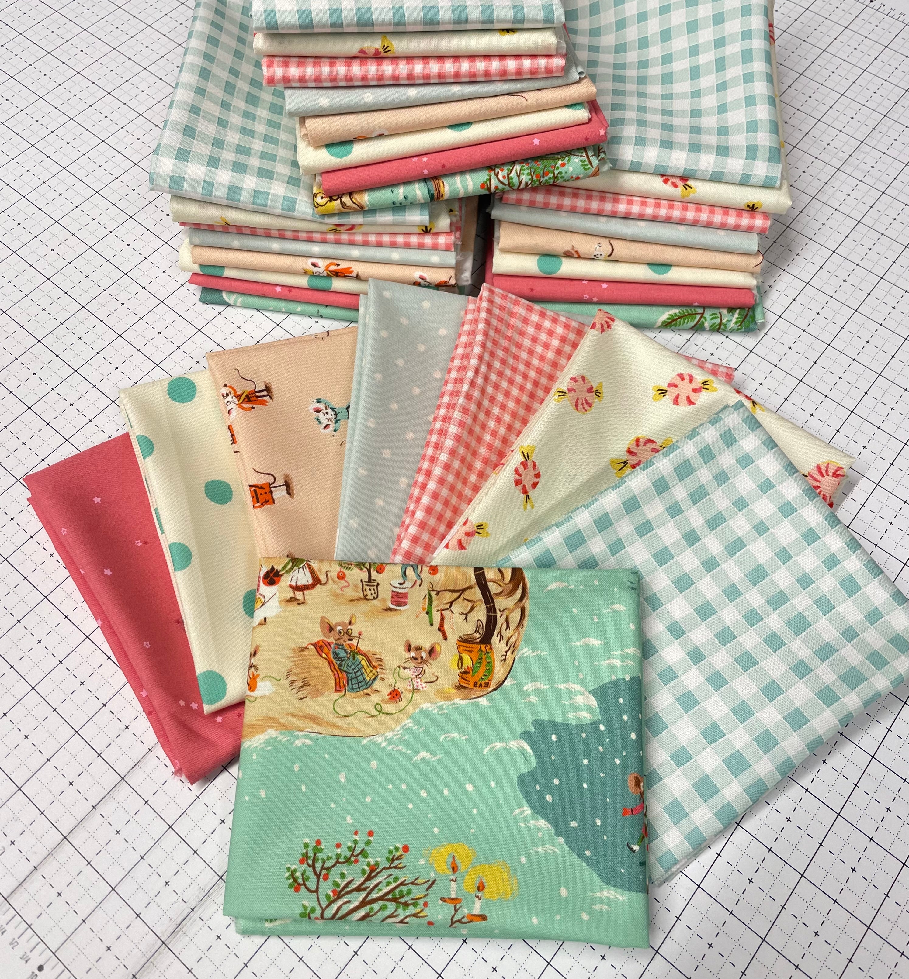 Celebrate the season with the irresistible charm of Christmas Mice from Heather Ross’s Studio Edit collection and some complimentary friends.This delightful print features tiny mice preparing for the holidays — decorating trees, exchanging gifts, and spreading festive cheer — all illustrated in Heather Ross’s signature storybook style and I’ve added a few fun supporting ginghams, spots, sweet treats and stars that get you started!