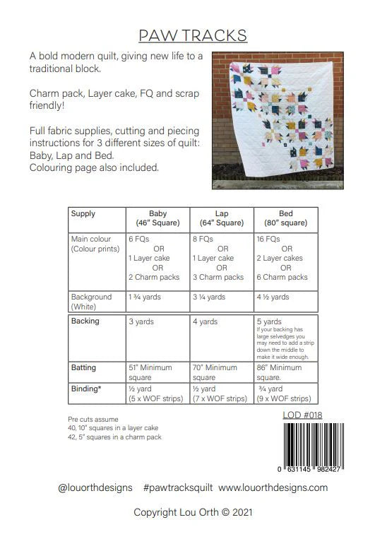 Paw Tracks Quilt Pattern - Lou Orth Designs