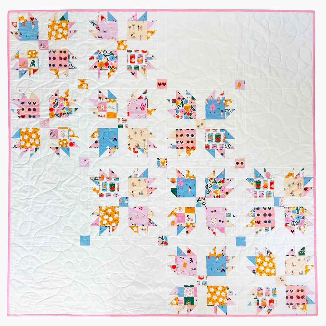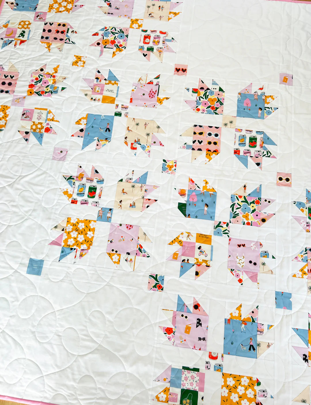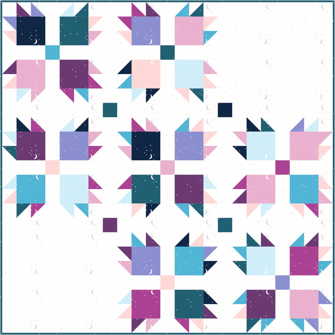 Pattern includes full fabric requirements, cutting and piecing instructions for 3 sizes, Baby, Lap and Bed. (Finished sizes and fabric requirements in images.)