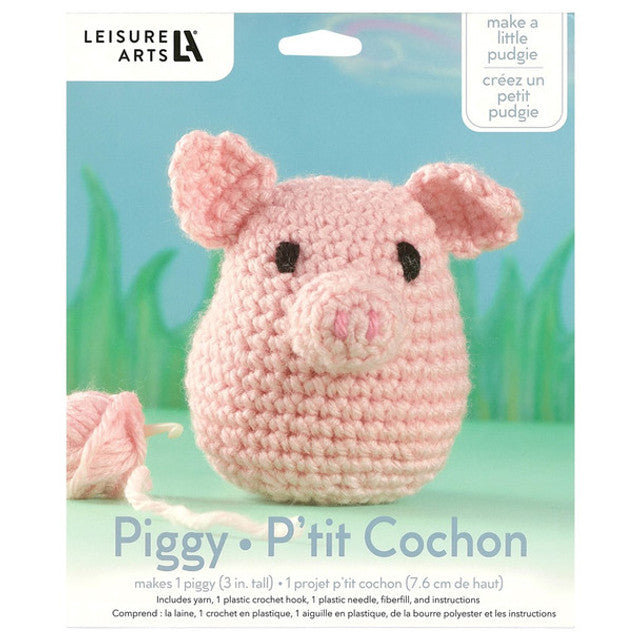 Leisure Arts Crochet Pudgies Piggy Kit- Crochet an adorable, 3" tall, round piggy.