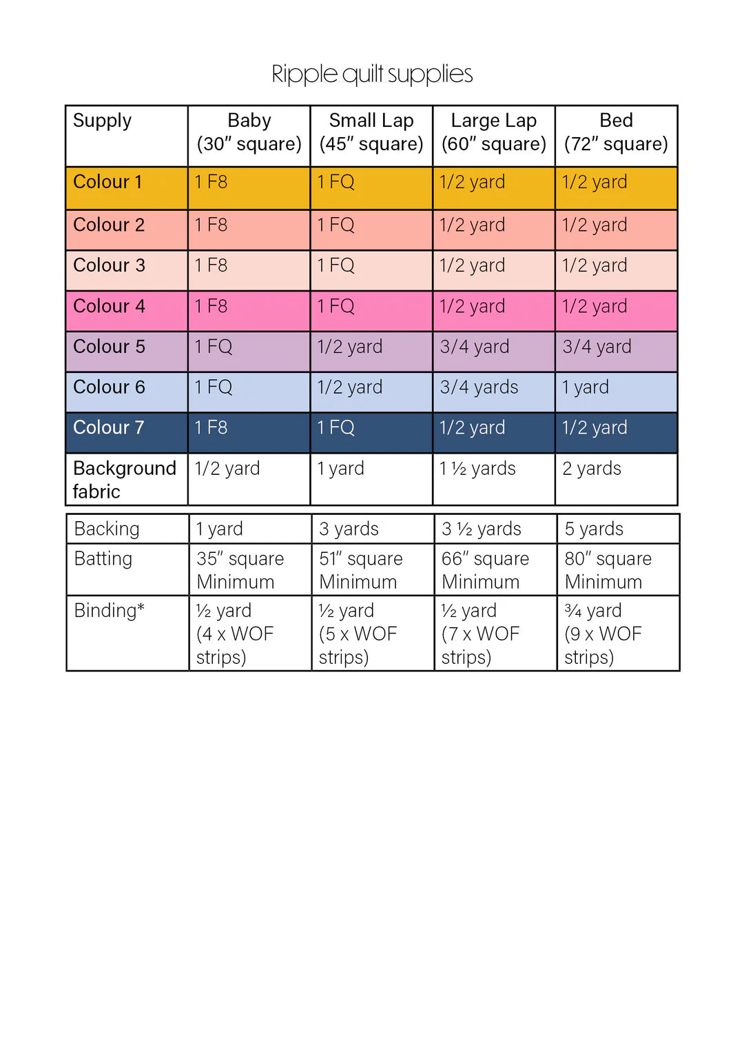Choose your favouite colour for a stunning monochromatic look or mix up and show off your favourite prints. Full written and illustrated instructions for all 4 sizes, which includes: