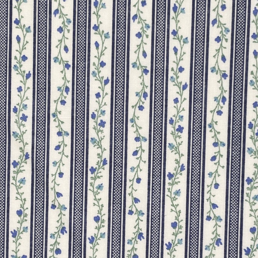 Wallpaper Stripe Navy features a classic stripe alternating with little floral sprigs in lighter shades of blue with green leaves.