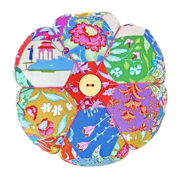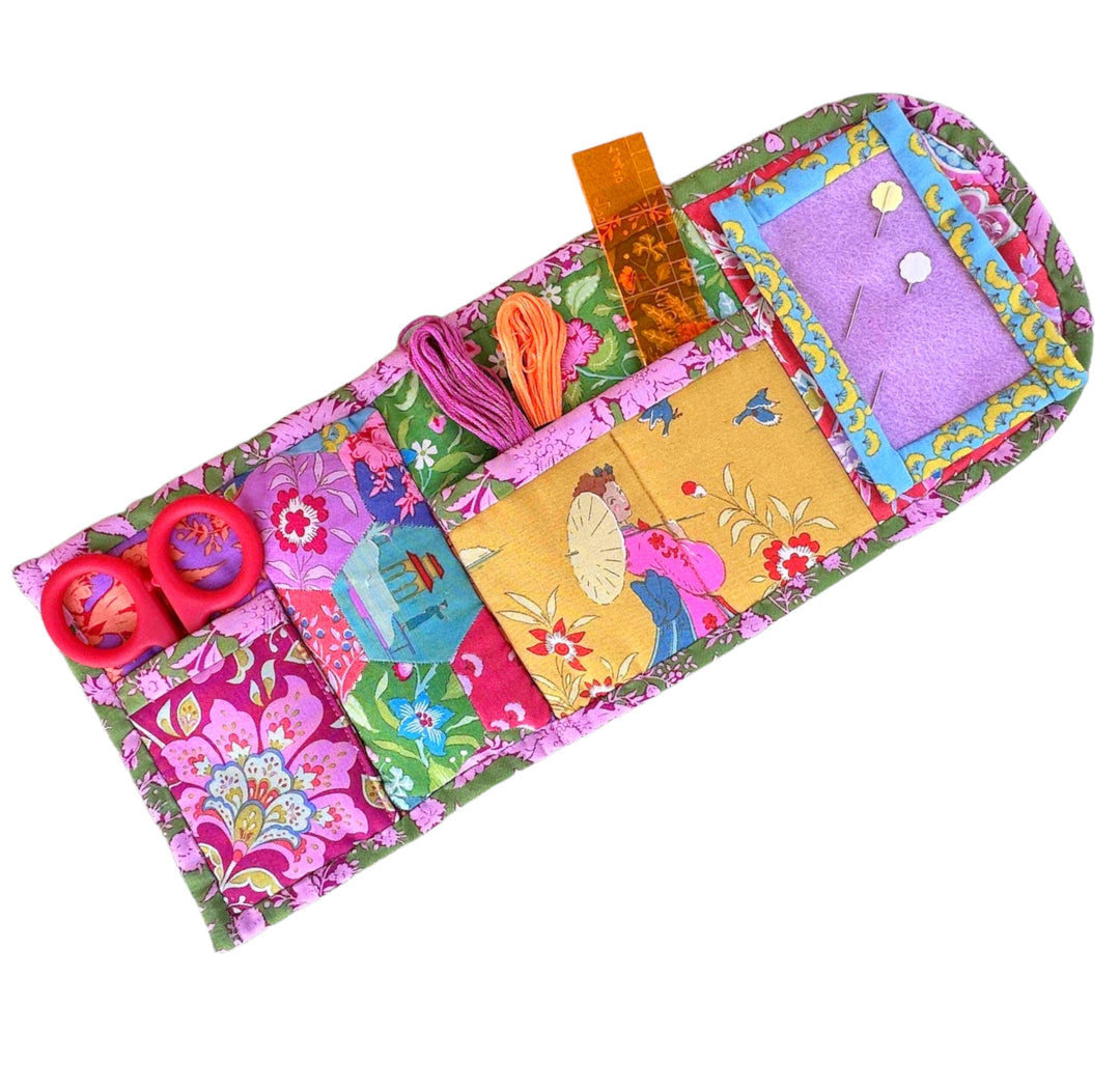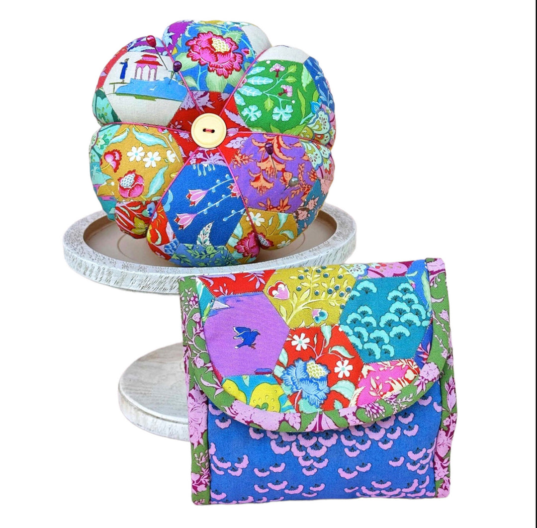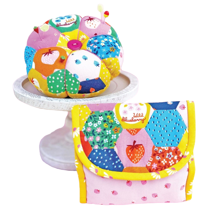 This bright sewing kit features English Paper piecing elements and machine stitching.