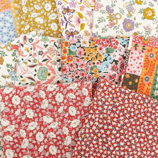 Discover the refined charm of the Tudor Celebration collection by Liberty Fabrics, curated exclusively through Riley Blake Designs. This exquisite fat-quarter bundle, brings together 18 coordinating prints that evoke the elegance and delicate detailing of classic English floral and heritage motifs.Launched in May 2025, the Tudor Celebration line celebrates intricate botanicals, poetic florals, and subtle texture layers — all with the craftsmanship and aesthetic Liberty Fabrics is known for.