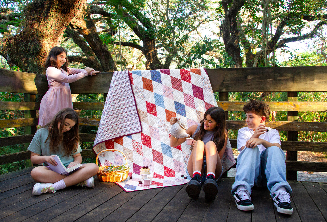 Fairview Avenue by Bari J. is a loving tribute to home, inspired by the cozy comforts of her childhood, from chintz wallpaper to tole chandeliers, this collection brings nostalgia to life with classic motifs and a warm color palette of poppy reds, indigo blues, rose, and saffron. It’s the perfect blend of vintage charm and modern quilting.