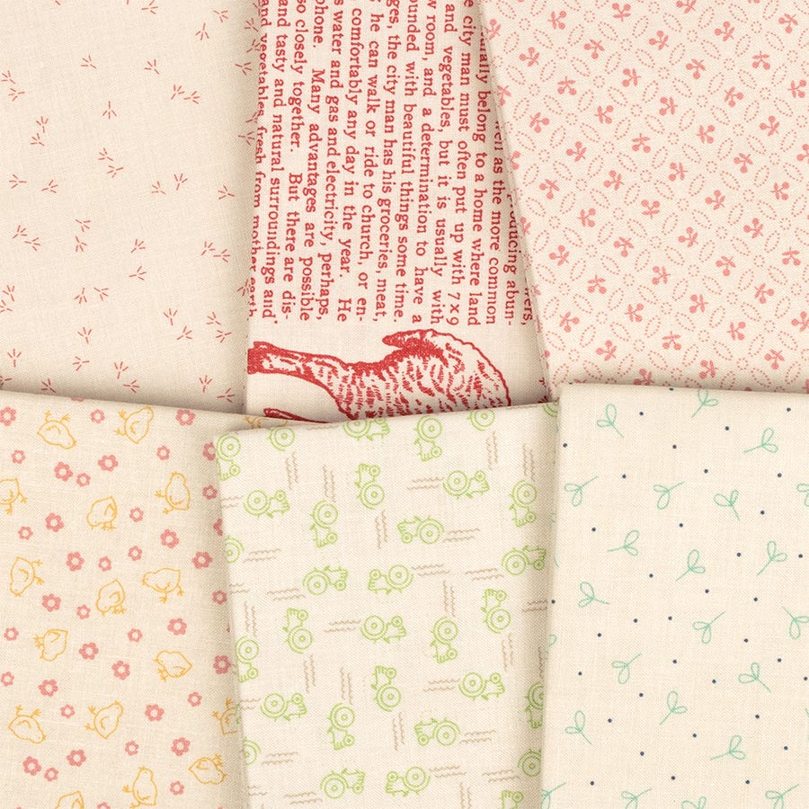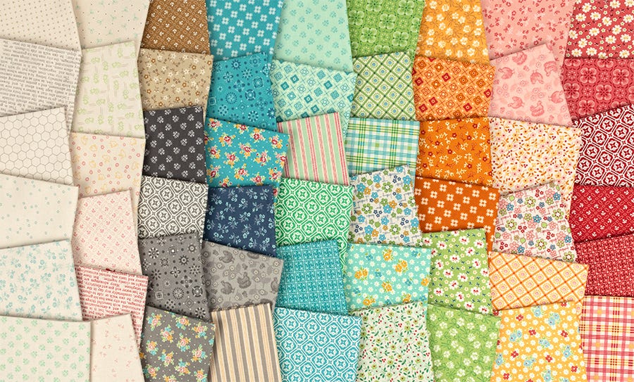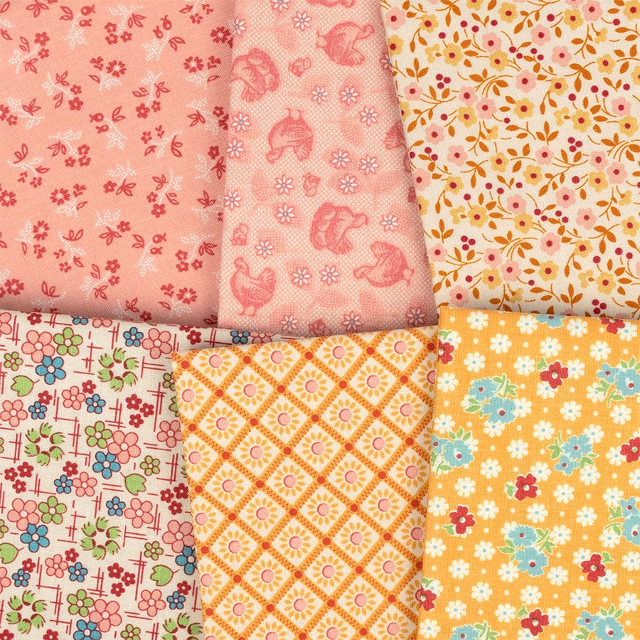 Lori Holt has filled this collection , Farmer's Daughter, with homespun charm which brings the warmth of country life to any project you sew with it.The collection blends classic florals, vintage inspired prints and cheerful colours that echo the simple joys of farm living. Whether you're stitiching up cozy quilts, charming home decor or handmade treasures, Lori hopes that this collection will remind you of a time when life was slower, sweeter and stitched with love.