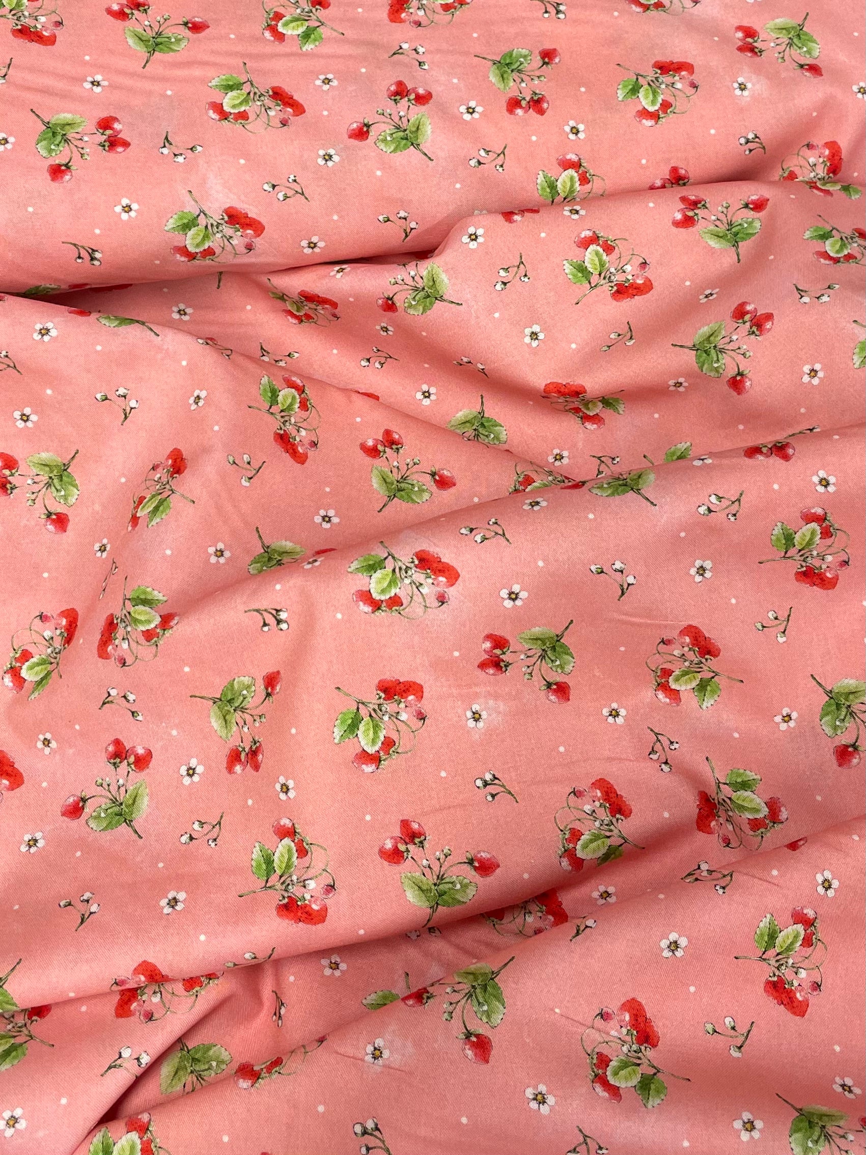 Strawberry Season Berry Sprig Toss Azalea - Briar Hill Designs Robert Kaufman Fabrics