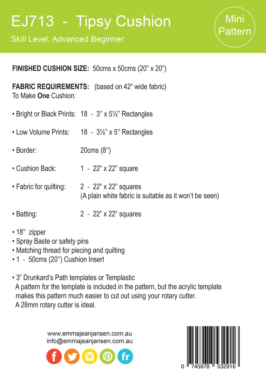 Tipsy Cushion Pattern and Template Set - EMMA JEAN JANSEN