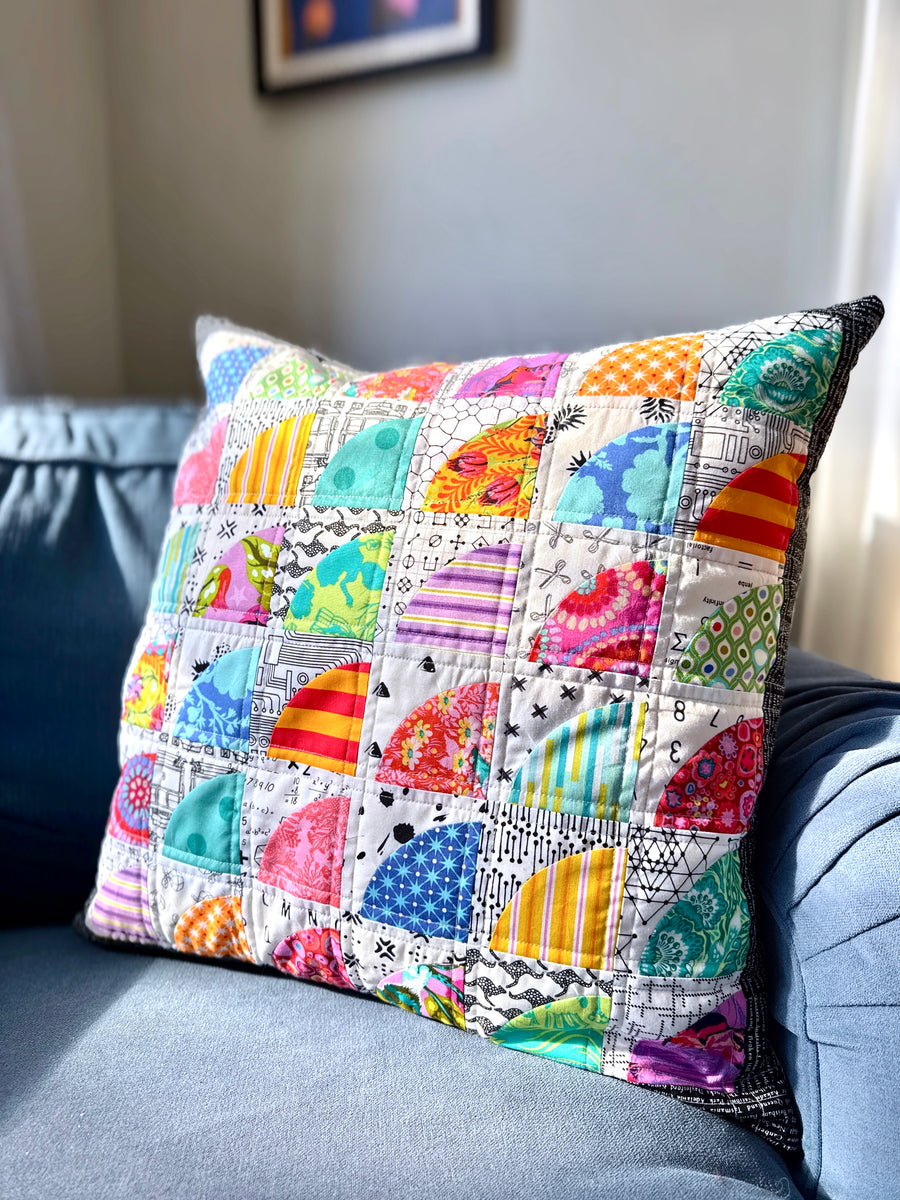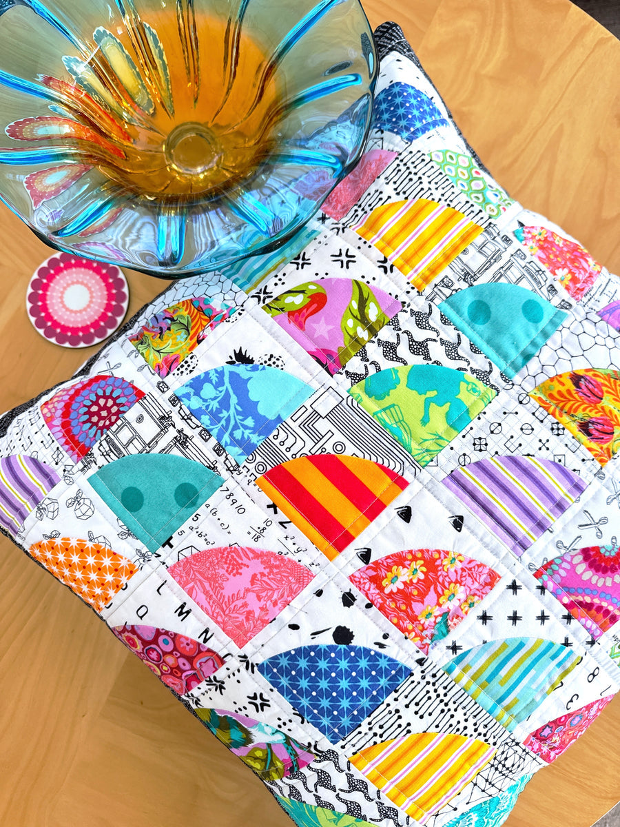 A quick pattern that features the Drunkard's Path block. It is also a fabulous scrap fabric project with so many colour possibilities.